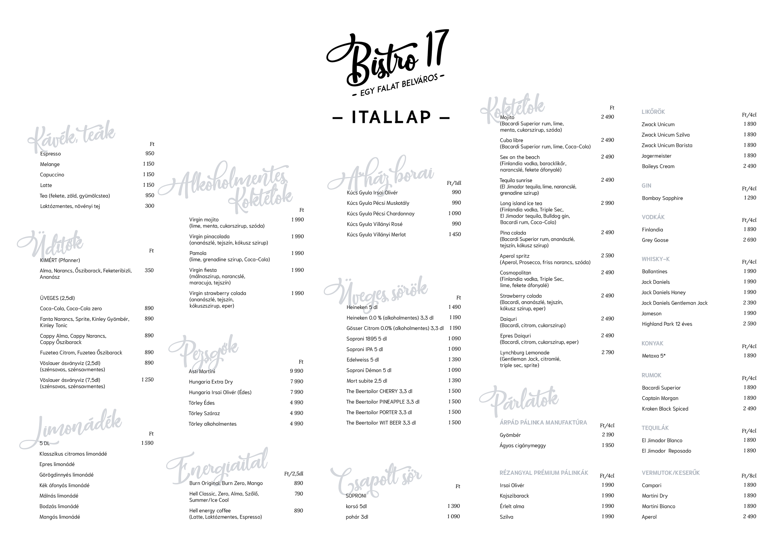 Péntek-szombat: 11:00-22:00 / Vasárnap – hétfő: 11:00-21:00